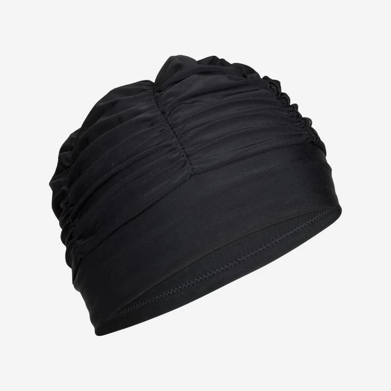 Un bonnet de bain en maille, extensible avec ses fronces qui apportent un grand volume et qui résistent au chlore, indispensable et chic.