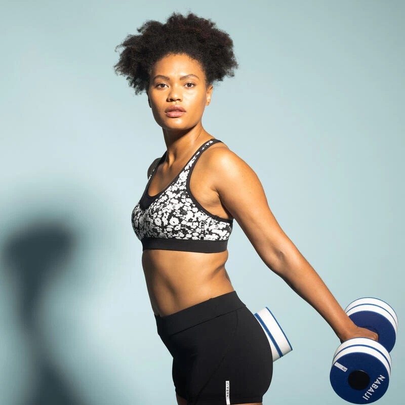 Pendant une séance de sport vos seins subissent des mouvements et rebonds et peuvent peser jusqu’à 5 fois leur poids initial. Une brassière intégrée au maillot de bain permet de protéger votre poitrine des impacts répétés. Nous vous proposons 3 types de maintien, en fonction de l’intensité de votre pratique sportive.