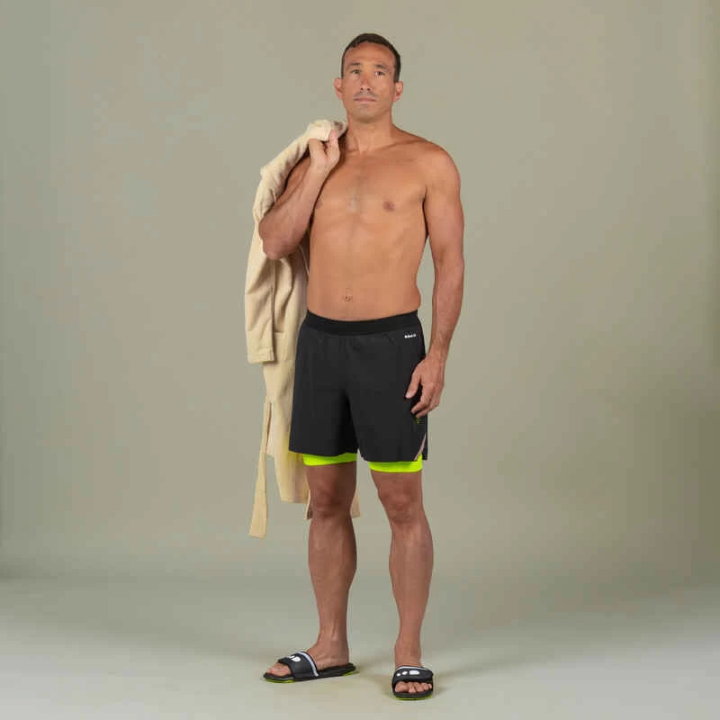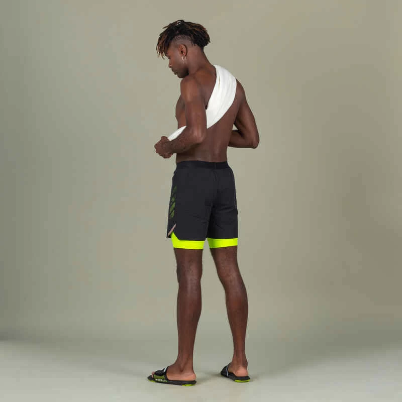 Jammer-Short De Natation Homme 500 Fiti – Noir / Jaune / Beige