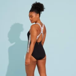 Maillot De Bain 1 Pièce Aquafitness Femme Elea Noir Moutarde
