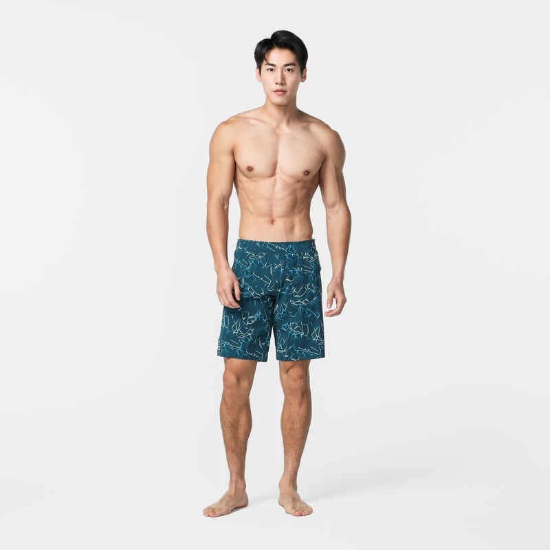 Short De Bain Natation Homme – Swimshort 100 Long – Bana Turquoise Bleu Marine